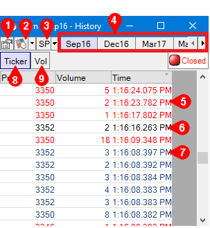 Market History Window: Select Market History to pull up a new instance of the market history window for the current contract.
