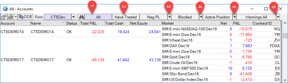 • Pos P&L Accounts that have made a profit for the current trading day.
