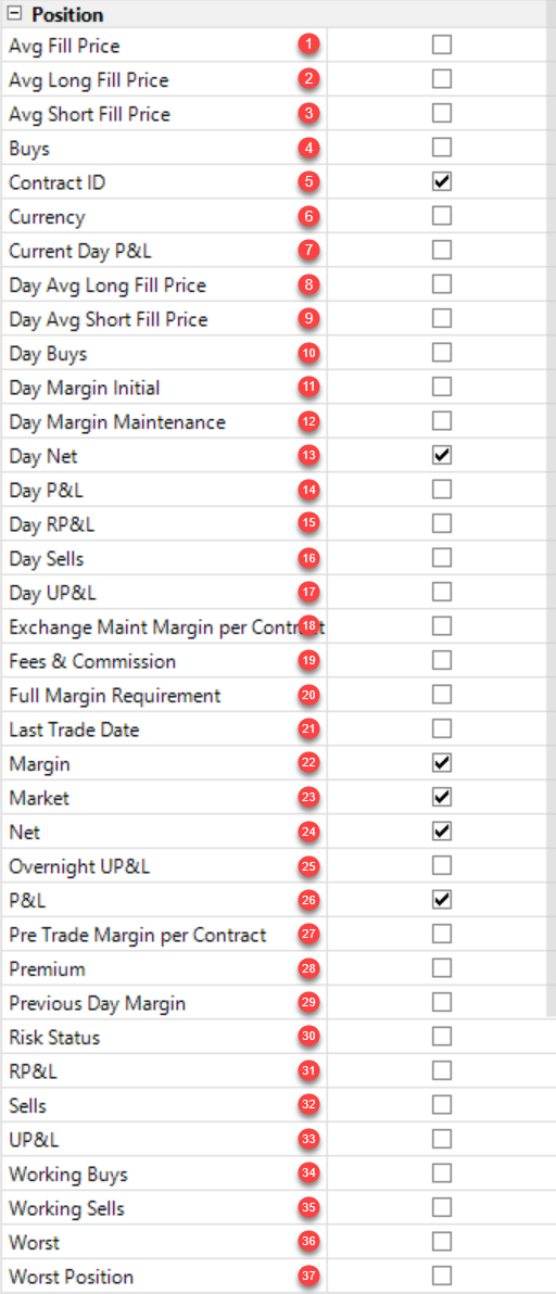 8. Day Avg Long Fill Price Displays day average long fill price by position