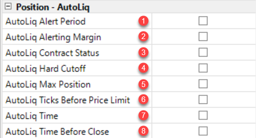 8. AutoLiq Time Before Close Displays the time away before market close that the position Autoliquidates.