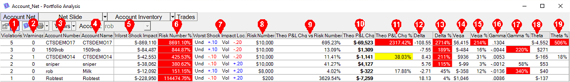 6. Risk Number % (optional) Show the percentage of the risk number used on the account net report. This will divide the worst shock impact by the risk number and will be highlighted in red if in violation.